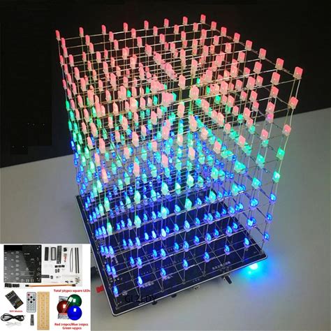 Cololful Light Cubes DIY WIFI APP 8X8x8 3D LED Cube Square Kit Red Blue Green LED MP3 Music Spectrum