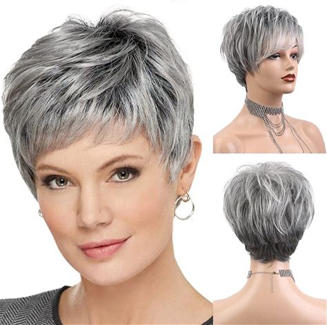 Easy Care Pruiken Pixie Cut Menselijk Haar Pruiken Voor Vrouwen Mooie Korte Grijze Pruiken Voor Vrouwen Natuurlijk Realistisch